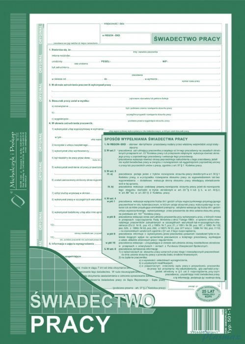 501-1 Świadectwo Pracy MICHALCZYK&PROKOP A4 40 kartek