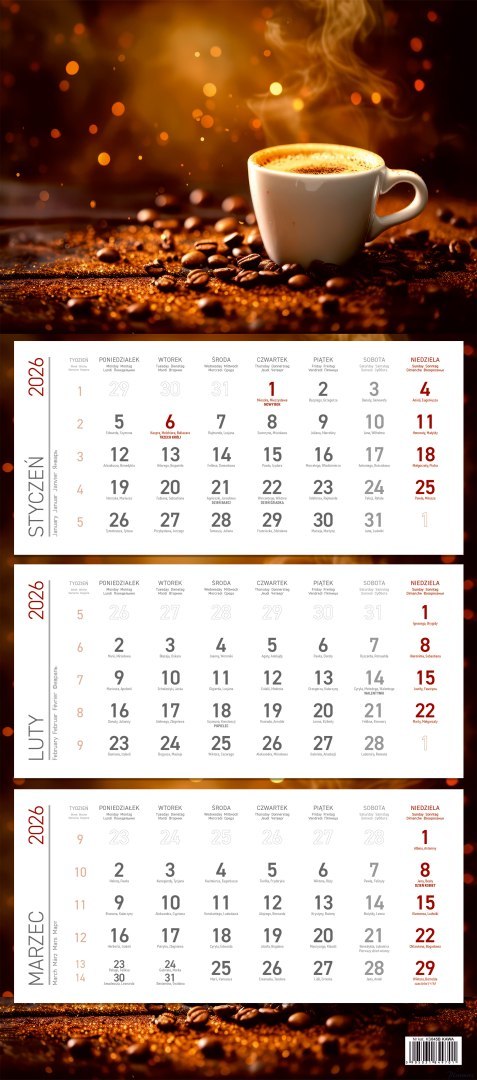 Kalendarz trójdzielny ekonomiczny KS045B KAWA 2026 WOKÓŁ NAS