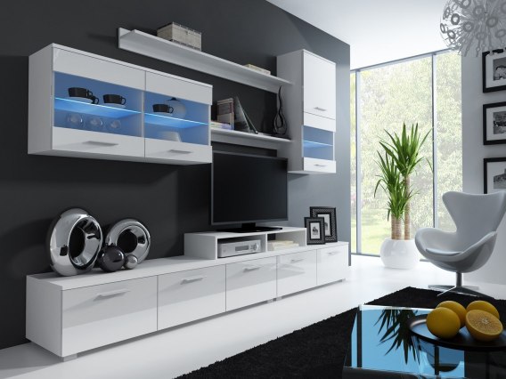 Meblościanka LOGO II 250/42/190 biały/ biały połysk