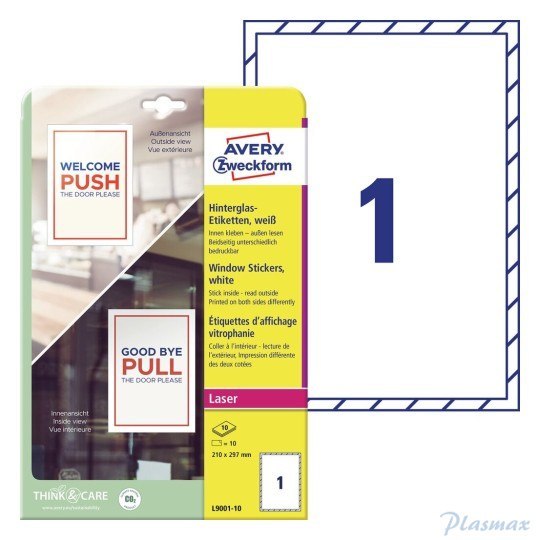 Naklejki na okna, 210 x 297 mm, 10 ark., Avery Zweckform L9001-10