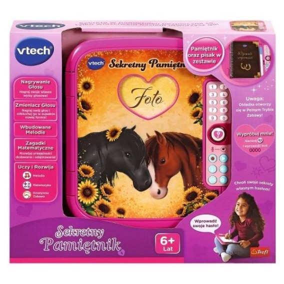 Sekretny Pamiętnik uczy i rozwija, wbudowane melodie, zmieniacz głosu, nagrywanie głosu, pisak w zestawie 61672 VTECH