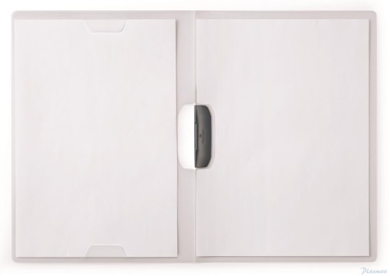 Skoroszyt z przezroczystej folii PP z wysokiej jakości wysuwanym obrotowo zaciskiem z tworzywa sztucznego oraz zakładką na dodatkową informację, np. list motywacyjny. Dokumenty są bezpiecznie przechowywane, bez ich dziurkowania i zszywania. Na 1-30 kartek w formacie A4.