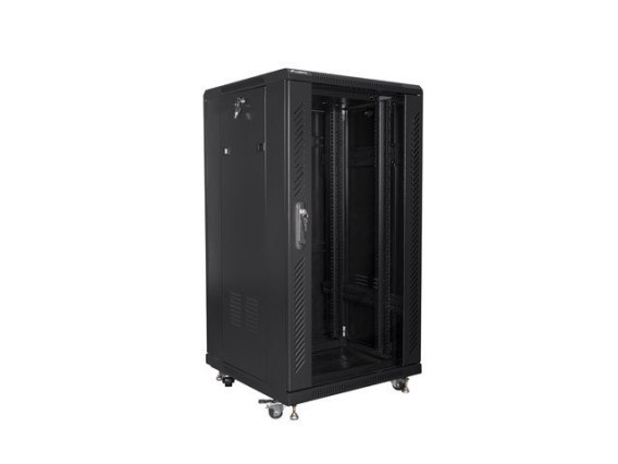 • Szafa rack Lanberg FF01-6622-12B (22U; 19''; 1160 mm / 600mm / 600 mm; stojąca; Szklane; 800 kg; kolor czarny)