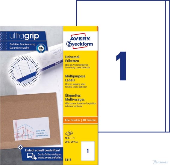 Trwałe etykiety uniwersalne 3418 200x297 100ark Avery Zweckform