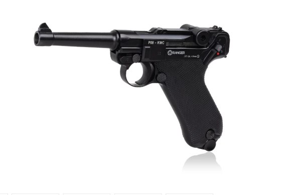 Wiatrówka pistolet RANGER P08 Parabellum KWC kal. 4,5 BBs BLOW BACK 21 strz. FULL METAL CO2 (AAKCMB410AZB)