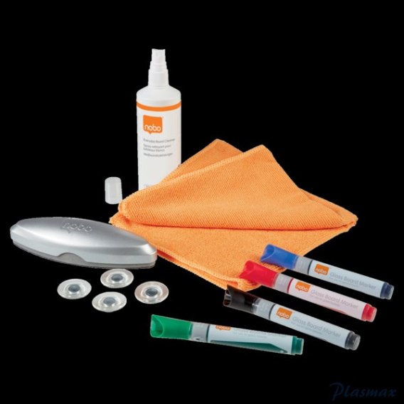zawiera wszystko, co jest Ci potrzebne do korzystania ze szklanych tablic suchościeralnych Nobo