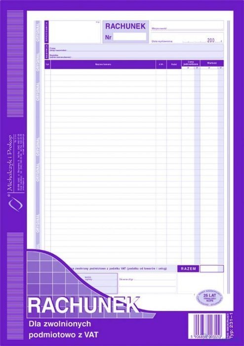 231-1 Rachunek A4 dla zw.z VAT MICHALCZYK I PROKOP