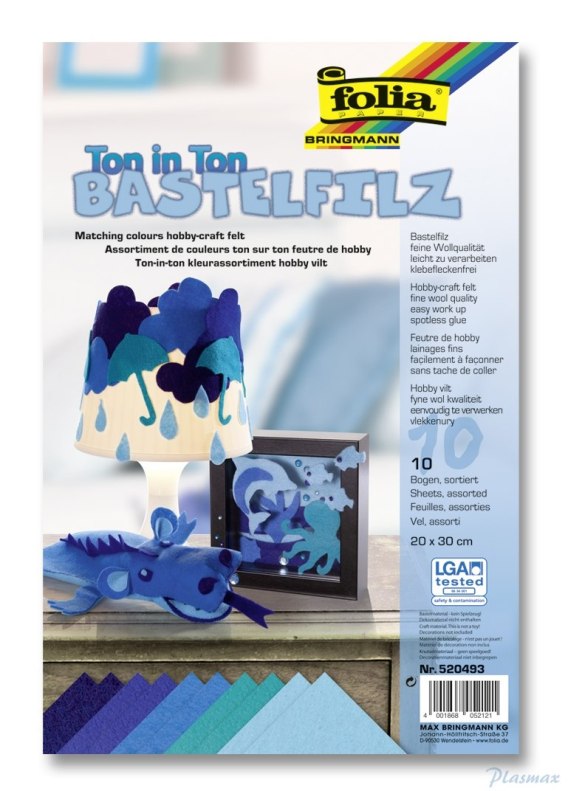 Filc dekoracyjny mix niebieski, 20x30cm, 1,5mm, 10 ark, Folia FO 5204-93