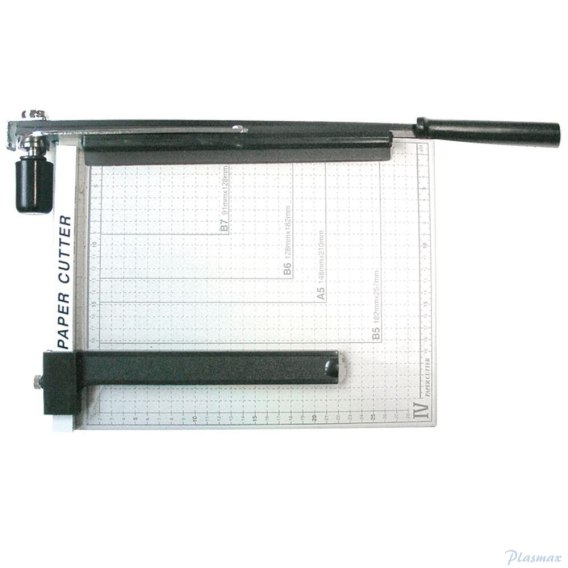- gilotyna biurowa - format A4 - do cięcia papieru i folii - tnie jednorazowo do 10 arkuszy - metalowy blat z podziałką formatów - automatyczny docisk papieru zapobiegający przesuwaniu się papieru podczas cięcia - ogranicznik formatu