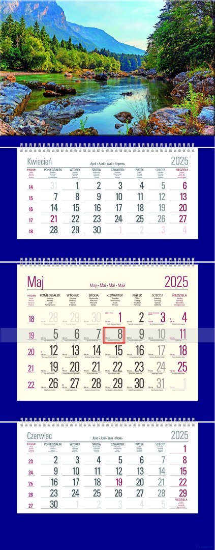 Kalendarz Trójdzielny z główką (T07) RZEKA - granat 2025 TELEGRAPH