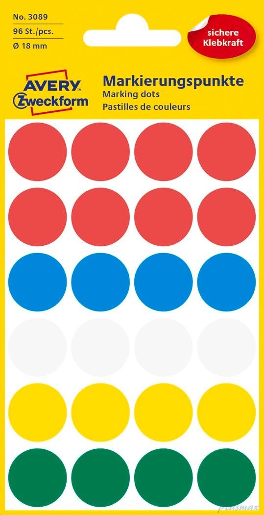 Kółka do zaznaczania mix kolorów 3089 Q18 4ark Avery Zweckform