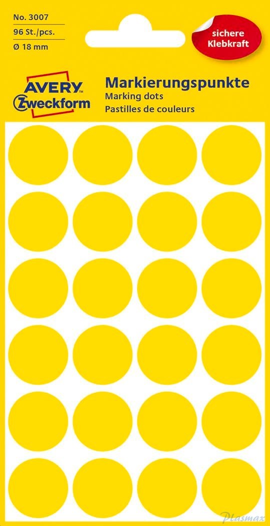 | Nazwa B2B | Trwałe kółka do zaznaczania _18mm, 96szt./op. zółte 3007 Avery Zweckform |