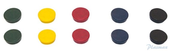 Mocne magnesy do tablic magnetycznych_nie rysują powierzchni magnetycznej_utrzymują ciężar do 0,75kg_średnica: 30mm_10 sztuki w j.s._mix kolorów