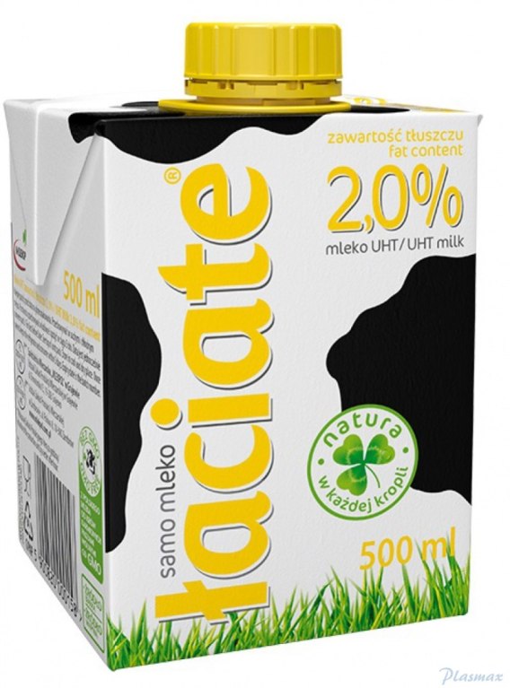 Pyszne polskie mleko od krów karmionych paszami bez GMO_doskonałe źródło białka_bogactwo cennych witamin i składników mineralnych_mleko Łaciate to niezmiennie od lat sprzedażowy hit_Polacy pokochali mleko UHT, bo dzięki sprawdzonej technologii i nowoczesnym opakowaniomzachowuje świezość przez 6 miesięcy (do momentu otwarcia), nie tracąc smaku ani wartości odżywczych_zawartość tłuszczu 2%_pojemność 0,5 l