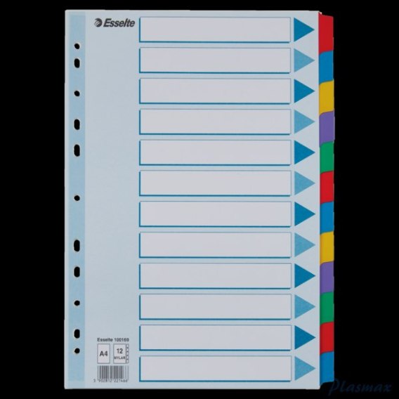 | Nazwa B2B | Przekładki, kolorowy karton, karta opisowa Mylar A4, ESSELTE, 12 kart |