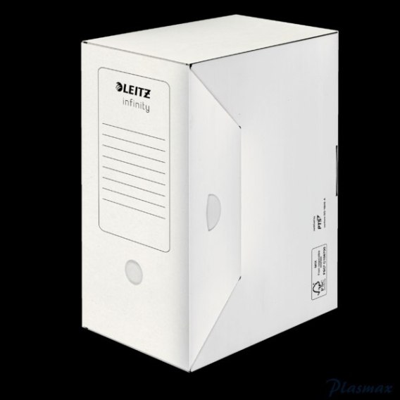 Pudła i teczki Leitz Infinity są rekomendowane do długoterminowej_archiwizacji dokumentów w narodowych archiwach, muzeach, bibliotekach,_szpitalach czy prywatnych firmach._Produkty Leitz Infinity spełniają najwyższe normy jakościowe ISO (16245-A)._Innowacyjna konstrukcja z automatycznie składanym dnem oszczędza czas_i wysiłek. Pudła są gotowe do użycia w kilka sekund._Wyprodukowane w 100% z bezkwasowej tektury z włókien pierwotnych_(virgin). Wszystkie pudła archiwizacyjne Infinity są wykonane z lekkiej,_a jednocześnie wytrzymałej tektury falistej, której wytworzenie pochłania_do 60% mniej surowca w porównaniu z powszechnie stosowanym kartonem._ Spełniają wymagania ISO 16245-A dla długotrwałego_przechowywania dokumentów__ Testowane przez PTS Germany i z certyfikatem tej_organizacji__ Najwyższej jakości tektura (wszystkie 3 warstwy wykonane_z włókien pierwotnych)__ Bezkwasowe__ Wartość pH od 8,0 do 10__ Tektura wytworzona z rezerwą alkaliczną gwarantującą_ochronę przed otoczeniem kwasowym wpływającym na_starzen