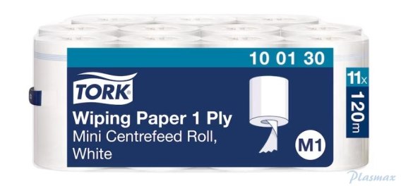 Ręcznik w roli Tork centalnego dozowania mini, 1 warstwa, kolor biały, celuloza z makulaturą, długość 120 m, 11 rolek/op, system M1