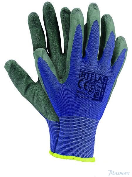 Rękawice ochronne wykonane z poliestru, powlekane latexem.zakończone ściągaczem powleczenie o chropowatej strukturze zapewnia doskonałą chwytność, nie powodując usztywnienia rękawicy odporne na ścieranie i rozdarcie rozciągliwe i wytrzymałe, mimo iż są cienkie elastyczne, dzięki czemu świetnie dopasowują się do dłoni nie kurczą się w kontakcie z wodą oraz zapewniają doskonałą manualność przy ograniczeniu ślizgania się trzymanego przedmiotu stosowane jako zamiennik dla rękawic RNYLA zgodne z normami EN388 (przykładowe poziomy odporności: 2 1 2 1) i EN420