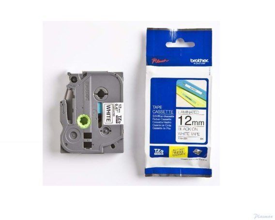 Taśma BROTHER TZE231 (TZE-231) laminowana 12mmx8m czarny nadruk/białe tło