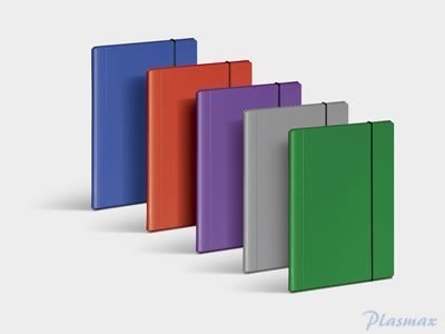 _wykonana z twardej tektury o grubości 1 mm__format A4__szerokość do 20mm__dwustronnie barwiona, laminowana folią polipropylenową__gumka w kolorze czarnym