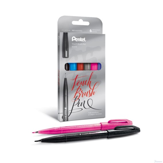 Zestaw pisaków pędzelkowych do kaligrafii i liternictwa SES15C-ST6ACENPVPL PENTEL