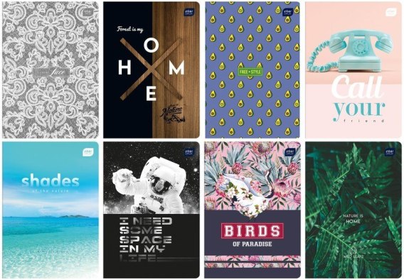 Zeszyt__okładka pokryta lakierem UV__zaokrąglone rogi (format A5)__bogata kolorystyka i duża_różnorodność wzorów okładek__jednostka sprzedaży 1 sztuka
